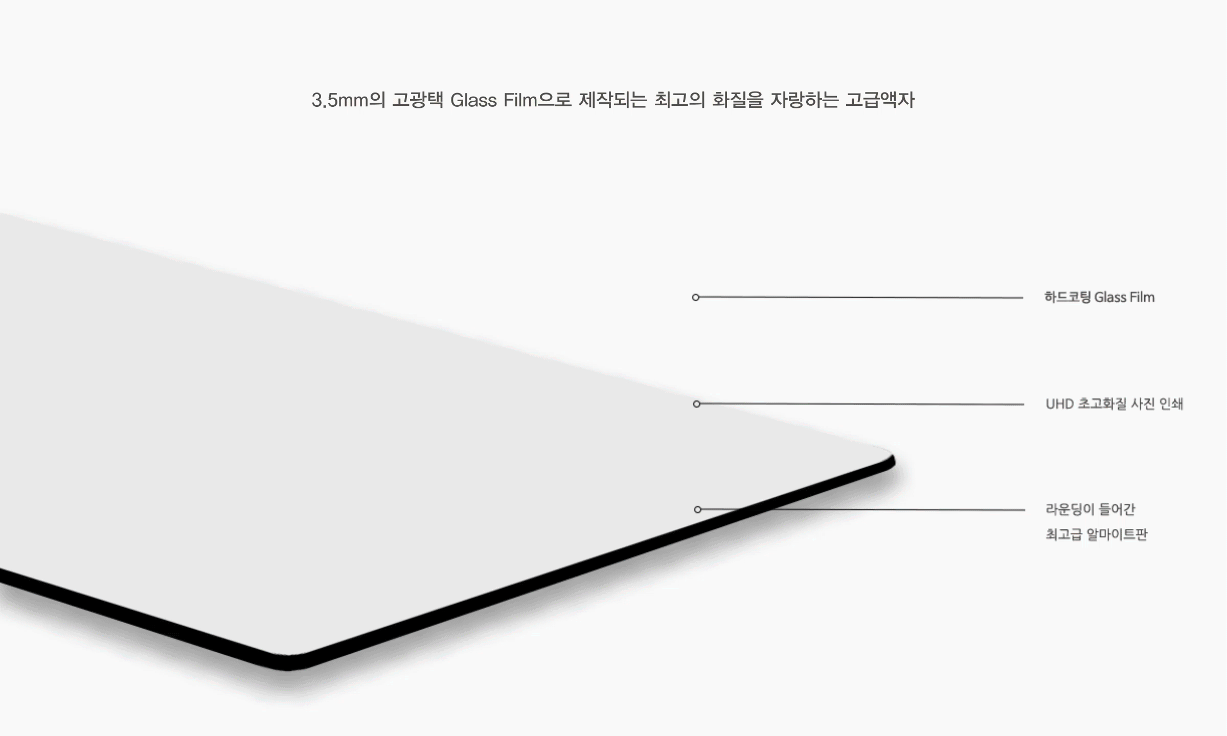 고급 인화 필름과 글래스 필름을 사용하여 표면을 하드코팅한 고광택 액자로