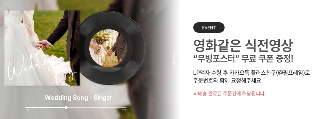 LP 감성의 특별한 액자와 필프레임의 웨딩 전용 포토테이블 세트를 함께 구성하여