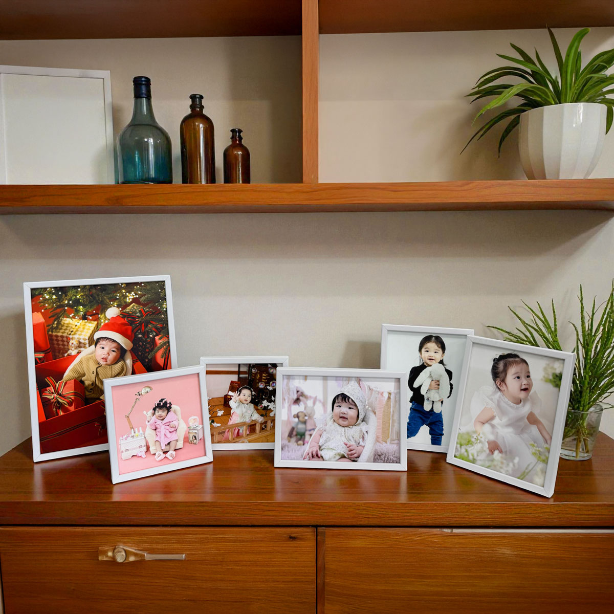 돌사진 액자 (화이트 우드 세트)